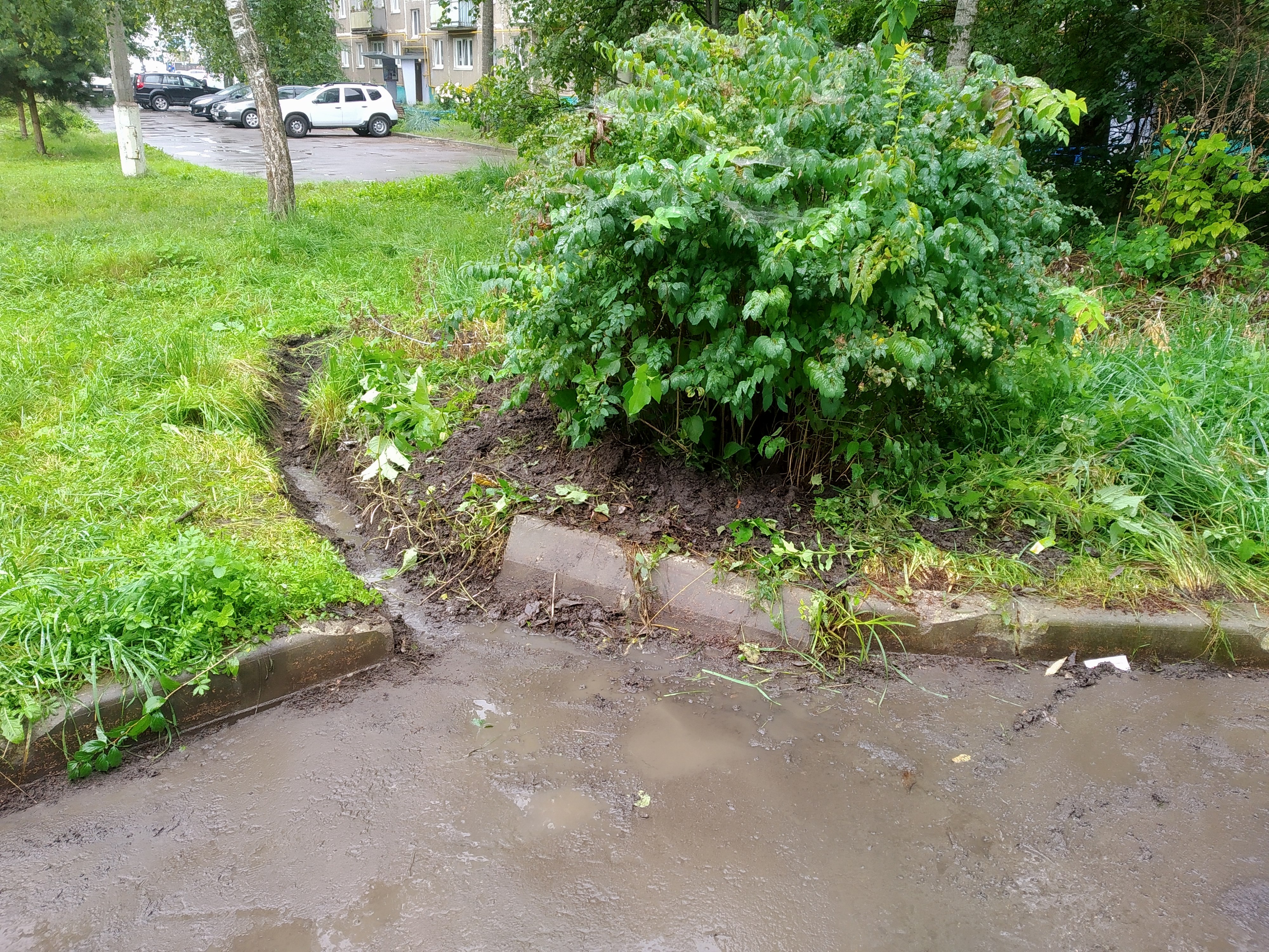 Ул. Строительная 9. Расчистка водослива и уборка во дворах. Спасибо работникам коммунальных служб и ДорСервис за оперативность и старание.