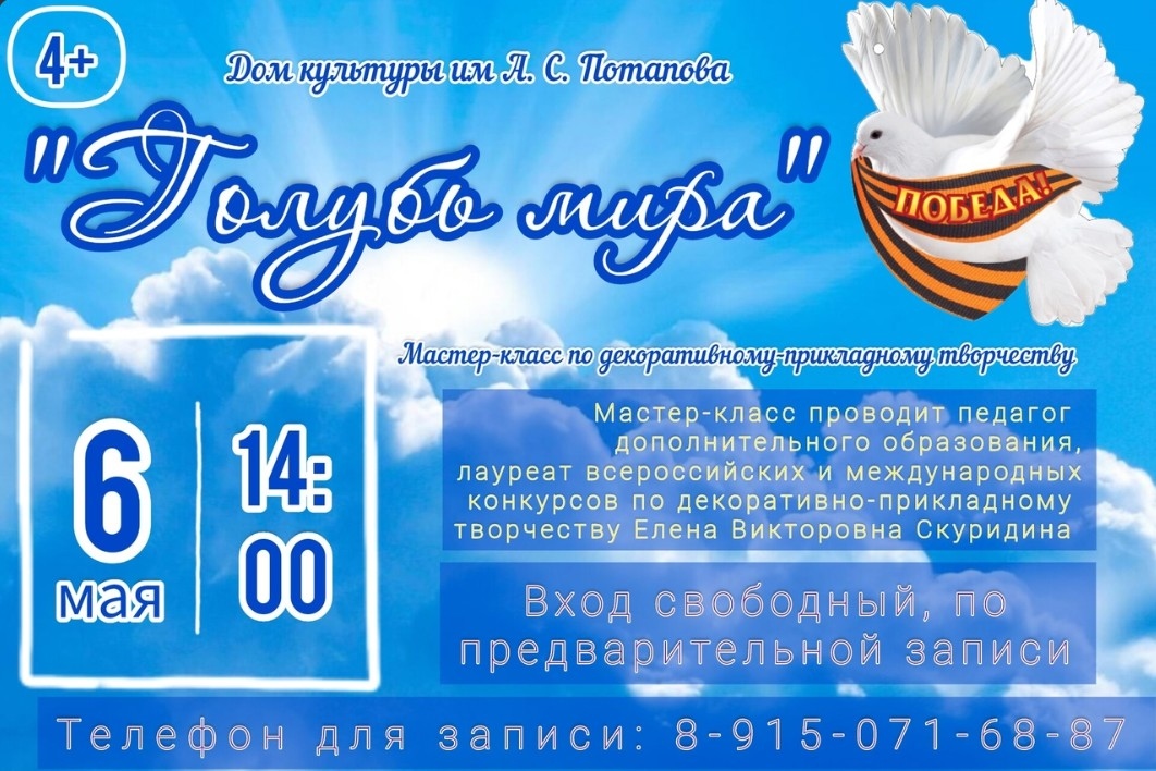 6 мая в Павловском Посаде состоится увлекательный мастер-класс по декоративному-прикладному творчеству «ГОЛУБЬ МИРА».