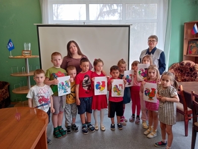 Вместе прочитали рассказы Владимира Сутеева «Умелые руки», «Петух и краски». А в завершение ребята с удовольствием приняли участие в мастер-классе «Разноцветное перышко».