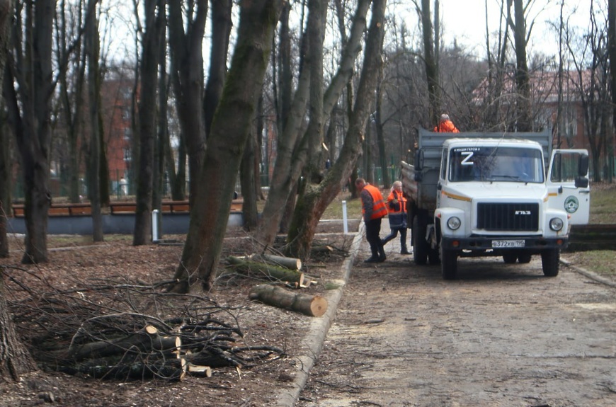 Началась обрезка деревьев и кустарников, спил сухостоя. Порубочные остатки превращают в щепу с помощью специального оборудования и используют в качестве удобрения.
