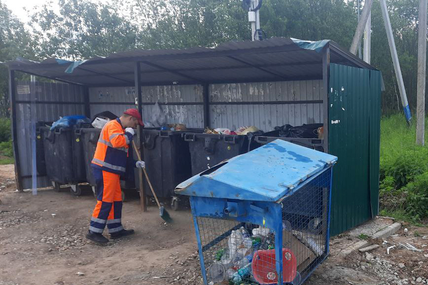 Сотрудники муниципального учреждения «Благоустройство» ежедневно приводят в порядок места сбора ТКО в населенных пунктах Рузского городского округа.