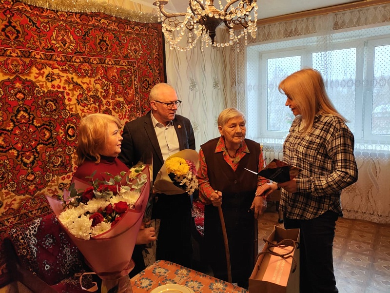 По поручению главы городского округа Воскресенск Алексея Малкина с юбилеем женщину поздравила его первый заместитель Елена Овсянкина. Она передала имениннице поздравления и подарки от губернатора Московской области Андрея Воробьева.