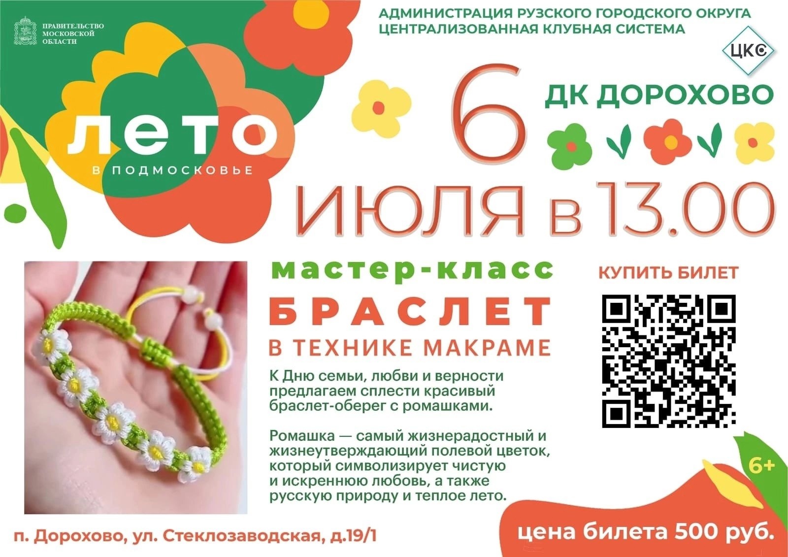 6 июля в Дороховском доме культуры Рузского городского округа состоится мастер-класс, посвященный Дню семьи, любви и верности.