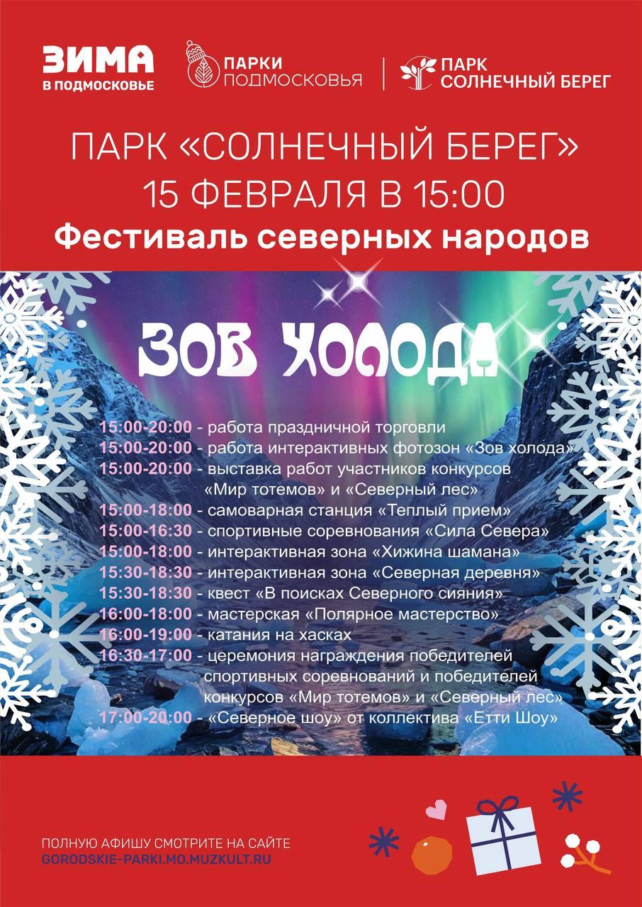 15 февраля в парке "Солнечный берег" поселка Запрудня пройдёт фестиваль северных народов "Зов холода".