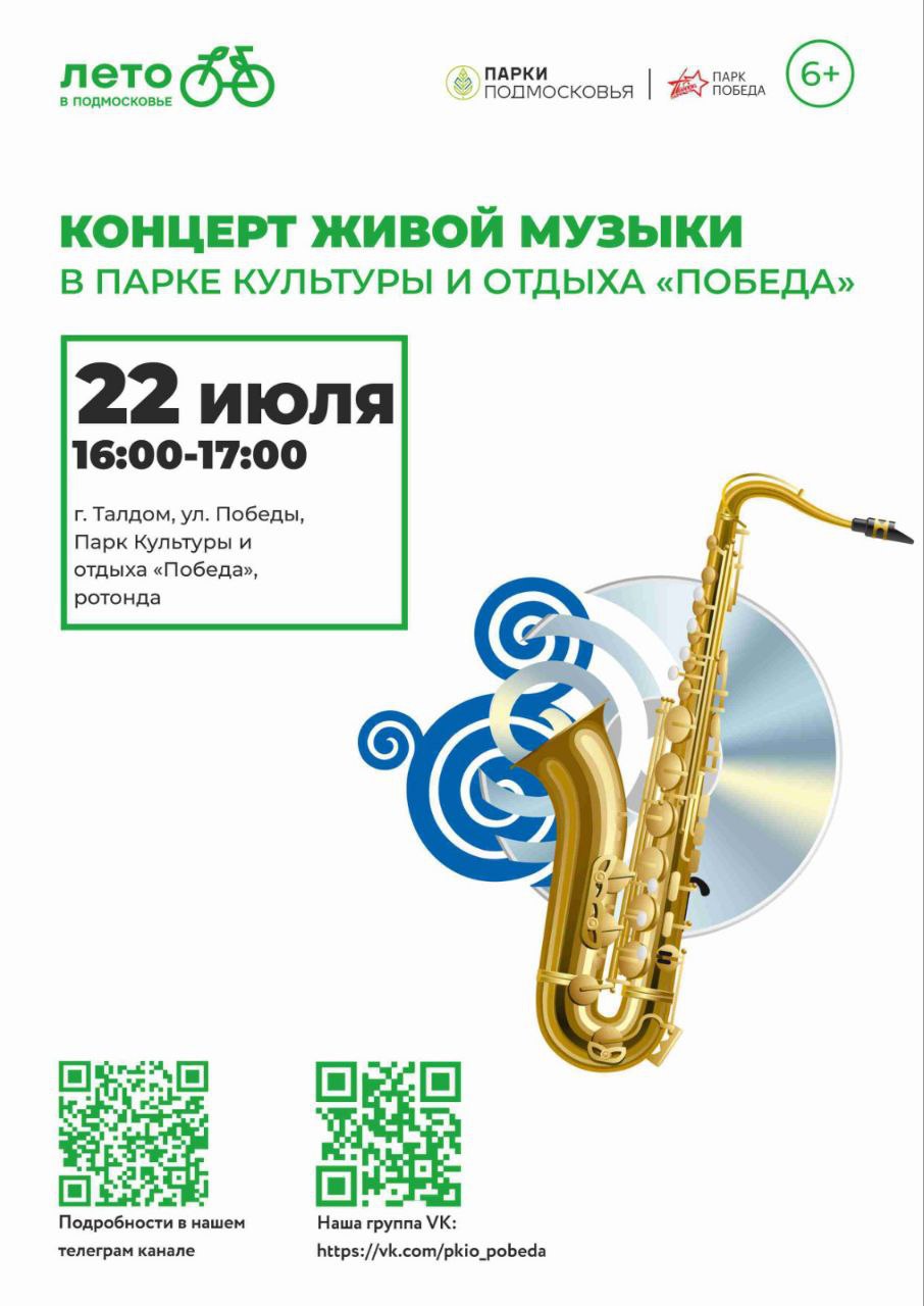 Парк культуры и отдыха "Победа" приглашает жителей и гостей округа на концерт живой музыки.