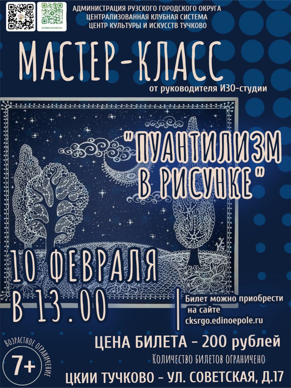10 февраля в Тучковском центре культуры и искусств состоится творческое занятие «Пуантилизм в рисунке».