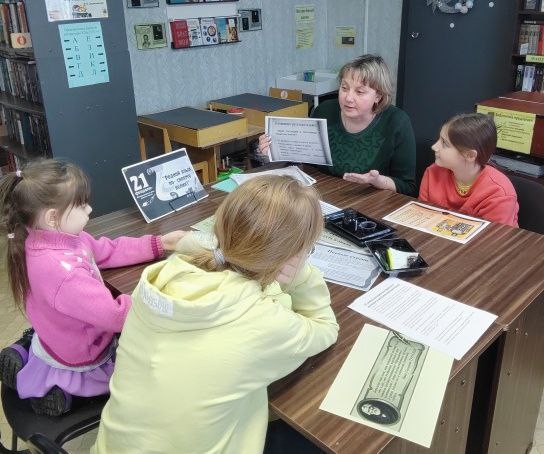 Встреча была приурочена к Международному дню родного языка. Юные читатели приняли участие в викторине «Я и словари» – отвечали на вопросы о назначении различных словарей, о словарном запасе человека и о том, как его пополнять. Ознакомились с «Толковым словарем живого великорусского языка» Владимира Даля, на составление которого ушло 53 года.