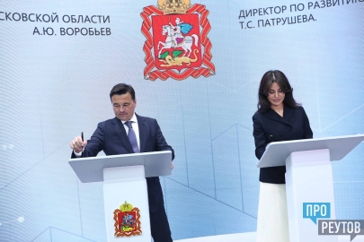 Губернатор Московской области Андрей Воробьев и директор по развитию ООО «ХАВЕН» Татьяна Патрушева на ПМЭФ-2023 подписали соглашение о реализации проекта по строительству центра онкотераностики.